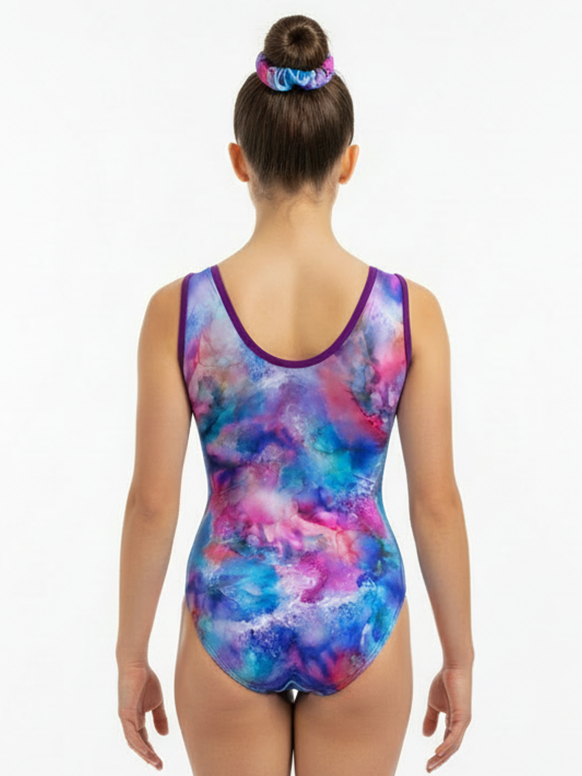 Elevate your gymnastics routine with the stunning Marble Cloud Leotard. Designed to capture the beauty of a sunrise after a storm, this leotard features a mesmerizing spectrum of colors like purple, pink, blue, turquoise, and red that will make you stand out with every flip and twist.
